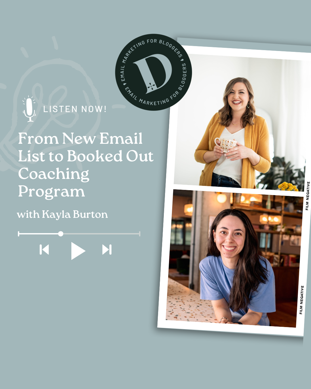 Kayla Burton — food blogger, food blog coach, and kind-hearted tech tutorial queen — joined me on Happy Subscribers, and y’all, I’ve got to spill the beans: She nurtured her email list weekly for two years with massively helpful, no-fluff content helping other food bloggers. Then she launched her first webinar… and ended up with THIRTY new coaching clients. (Yes, THIR-TY!)